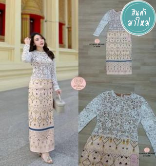 เซท 3 ชิ้น เดรสยาวเนื้อผ้ามีลายในตัวพิมพ์ายดอกไม้งานสวยเนื้อผ้าดีมากก