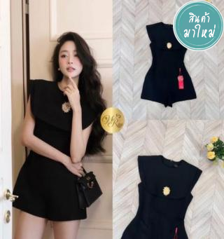 จั้มสูทขาสั้น แขนกุดตัวสวย เก๋ด้วยช่วงอกซ้อนชั้นผ้าคล้ายคลุมไหล่