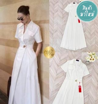 แม็กซี่เดรสตัวยาว คอปกเชิ้ต แขนสั้น ตัวเดรสเย็บเป็นทรงป้าย