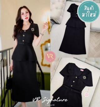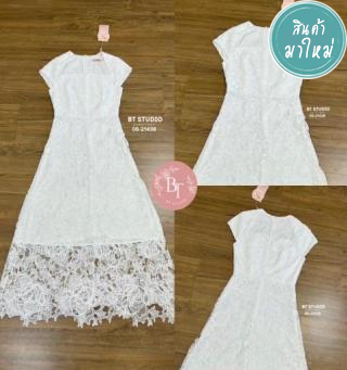 Dress ยาว แขนสั้น แต่งดอกไม้ 3d