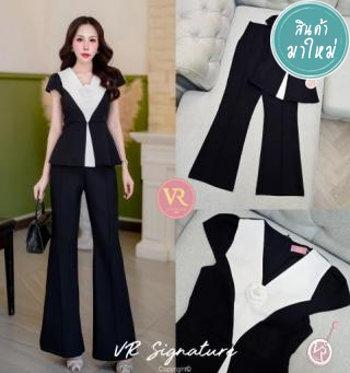 ชุดเซตBLAZERแขนกุด+เข็มกลัดดอกไม้+กางเกงทรงสวย