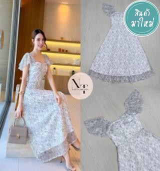 ชุดเดรสยาวผ้าตาข่ายปักลายดอกไม้ มีความเล่นแสงด้วยกลิตเตอร์เพิ่มความหรูหรามากขึ้น
