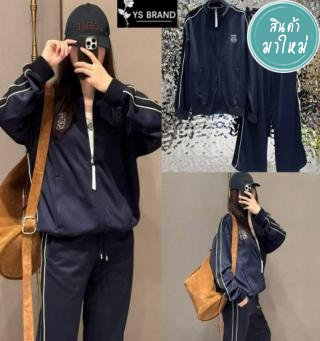 Set2ชิ้น เสื้อทรงสูทแขนยาวคอปกใหญ่สีดำ แต่งกระดุมด้านหน้า