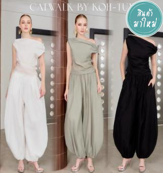 เท่ห์หรูดูมีสไตล์สุดๆ กับชุดเซตเสื้อปาดไหล่+กางเกงบอลลูนจั้มปลาย