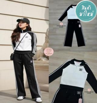 Set 2 ชิ้น เสื้อแขนยาวดีไซน์ด้านหน้าแต่งซิปและแต่งแถบด้านหน้า ปลายแขนเสื้อจั๊ม