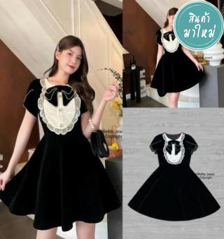มินิเดรสผ้ากำมะหยี่แต่งโบว์