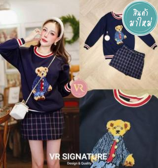 Set เสื้อสเวตเตอร์แขนยาว แต่งแถบช่วงคอ แขนเสื้อและชายเสื้อ