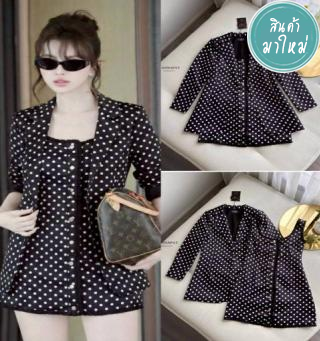 สวย ลัคชู ดูดี งานเซ็ท เดรส กับ เสื้อสูท ผ้าดีมาก Polka Dot สุดฮอต