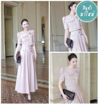 ชุดไทยประยุกต์ เซ็ท 3 ชิ้น เสื้อทรงคอจีน ไหล่ยกเล็กน้อยเพิ่มความอ่อนหวานและดูทันสมัย