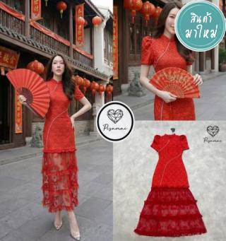เดรสผ้าทอกี่เพ้าตรุษจีนมาในงานผ้าทอสีแดง