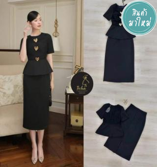 ชุดเซ็ทเสื้อแขนกุดทรงเข้ารูปแต่งกระดุมจริงสีทอง