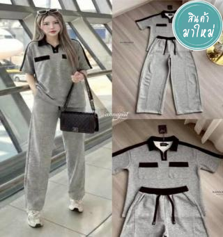 ชุดเซ็ต 2ชิ้น เสื้อแขนกุดคอวี แต่งกระดุมมุกด้านหน้า