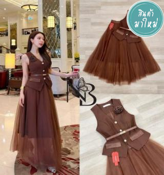 จั้มสูทยาวสายเดี่ยว เสริมลุ๊คเซ็กซี่เบาๆ สีมอคค่า ช่วงอกแต่งลูกไม้