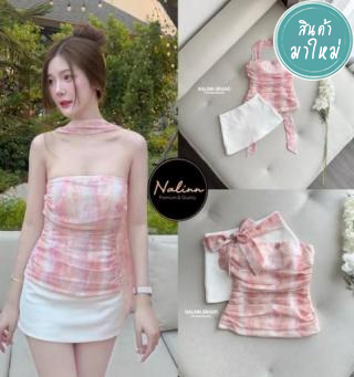Set 3 ชิ้น เสื้อเกาะอกลายผ้าน่ารัก โทนชมพู ดอกลายปักนูน ซิบหลัง