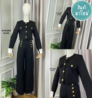 เซท 2 ชิ้น เสื้อเบเซอร์แขนยาวคลุมด้านหน้าแต่งกระเป๋าหลอกกระดุมสีทองปั้มลาย