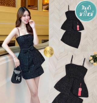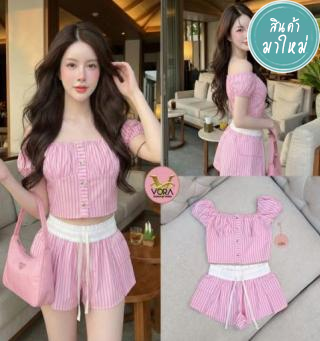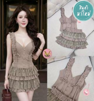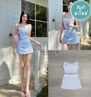 Set เสื้อสายเดี่ยวแต่งระบายช่วงสาย แต่งโบว์ด้านหน้า อกมีฟองน้ำจัดทรงให้ค่ะ
