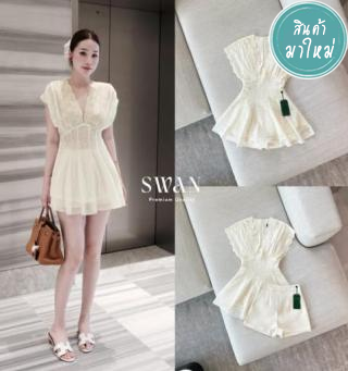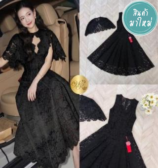 เซต 2 ชิ้นดีไซน์หวานละมุน เดรสผ้าลูกไม้ฉลุลายสวยทั้งตัว