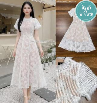 เดรสตัวยาว เนื้อผ้าฉลุสีขาวปักลายดอกไม้สวยหรู