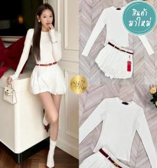 Set เสื้อครอปตัวสั้นแขนสั้นสม็อคพองจะใส่ปาดไหล่หรือบนไหล่ได้หมดค่ะ