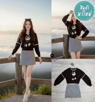Set เสื้อ+กระโปรง+เชือกคอ เรียบเท่ แอบหวาน