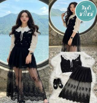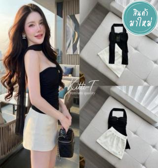 Set (2) ชิ้น เสื้อ+กระโปรง ทรงคล้องคอและคอปีน