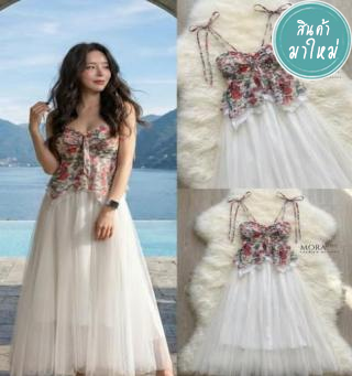 Set 2 ชิ้น เสื้อสายเดี่ยวผูกช่วงไหล่ แต่งลายดอกไม้สวยเก๋