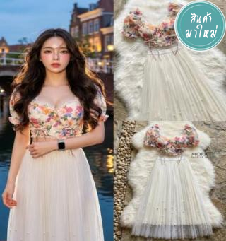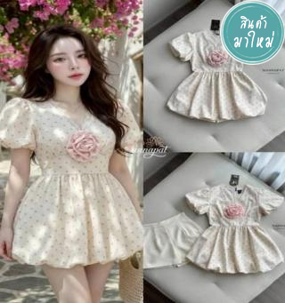 Set 2 ชิ้น เสื้อคอกว้าง แขนจั๊มตุ๊กตา แต่งลายดอกไม้สวยเก๋