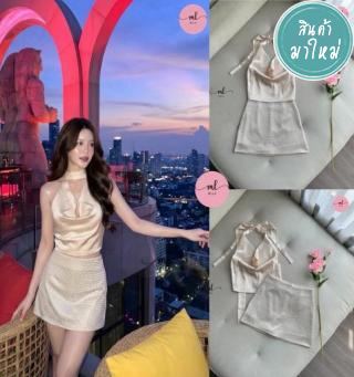 เซ็ต 2 ชิ้น ครอปสายคล้องคอผูกโบว์หลังผ้าซาตินเงาสวย