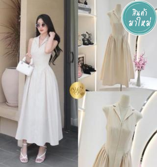 เดรสแขนกุดตัวยาวสวยทรงดี ตัวเดรสมาในผ้าเรียบเนื้อสวยมีน้ำหนักทิ้งตัวสวย