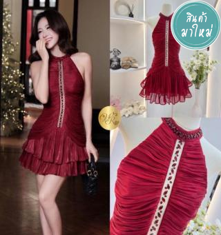 เดรสแขนกุดเว้าตัวสวยทรงดี ตัวเดรสมาในผ้าซิลญี่ปุ่นเนื้อเงาทิ้งตัวสวยพริ้ว