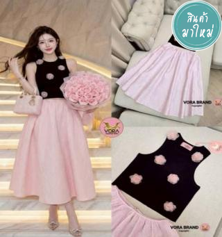 เซ็ตเสื้อปาดไหล่ชีฟองสีมพู มาคู่กับกระโปรงตัวสั้น ต้อนรับ summer