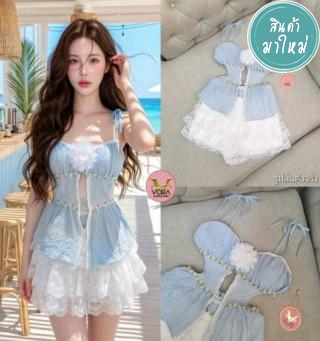 สายเดี่ยวตัวสั้น แต่งเว้าช่วงอก ผูกโบว์ด้านหน้า เอวเข้ารูป