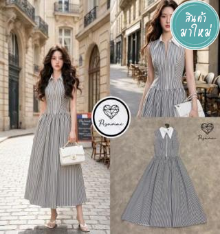 เดรสคอปกเชิ้ตตัวยาวลายทางสีดำ แต่งดีเท็ลสวยมากกกกก