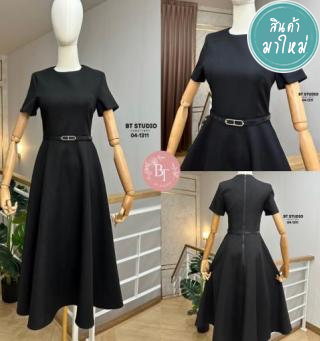 เดรสยาวดีไซส์แขนสั้นคอกลม ความยาวคลุมเข่าประมาณหน้าแข้งกำลังสวย