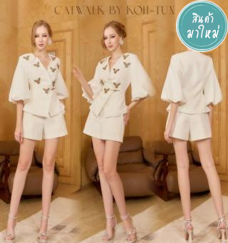 เสื้อป้ายหน้าแขนพองประดับผึ้ง เนื้อผ้าสวยมาก