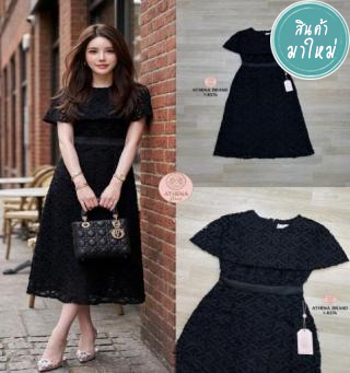 เดรสทรงเข้ารูป แขนพอง คอวี ซิปหลัง ชายเดรสผ่าหลัง เนื้อผ้าลูกไม้ป๊อปอัพ