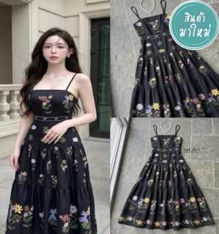 เดรสสายเดี่ยวตัวยาว สกรีนลายดอกไม้ ผ้าใส่สบาย ไม่ร้อน