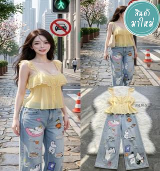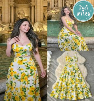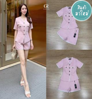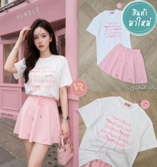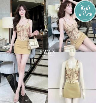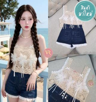 : SET (2)ชิ้น เสื้อตกแต่งด้วยดีไซน์ทันสมัย บริเวณขอบสายและหน้าอกตกแต่งผ้าฉลุ