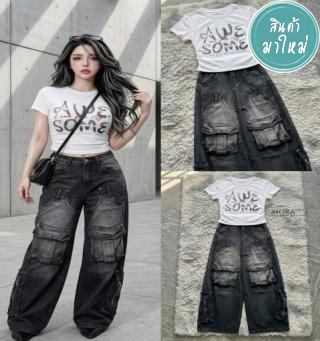 :Set2ชิ้น เสื้อยีนส์คอปก เย็บกระดุมสีทองLoewe ด้านหน้า ปั้กLoewe ช่วงอก