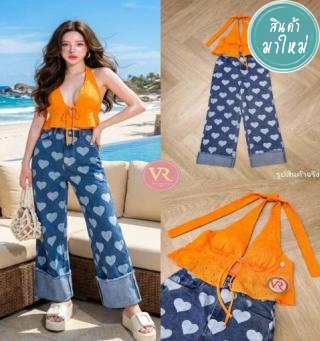 Set เสื้อสายเดี่ยวผ้าร่องยืด แต่งกุ๊นขอบลูกไม้ช่วงสาย และช่วงอก