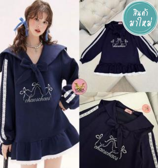 เดรสสั้นดีไซส์ปาดไหล่ปิดต้นแขนทั้งสองข้างแขนยาวแต่งปกช่วงปาดไหล่ ก