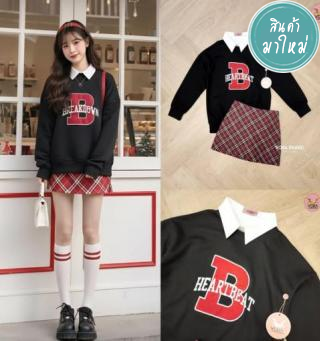 เสื้อสเวตเตอร์ แขนยาว ปักลายช่วงอก แต่งคอปก