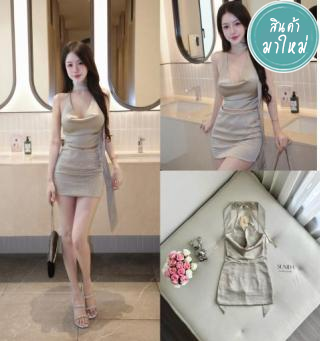 ชุดเซต3ชิ้นผ้าซาตินหนาพรีเมียม เสื้อคอถ่วงผูกคอ กระดุมด้านหลัง+ ผ้าพันคอ1 ชิ้น + กระโปรงแต่งเพชรด้าน
