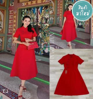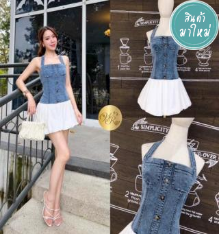เดรสสายคล้องคอ แต่งกระดุมหน้า