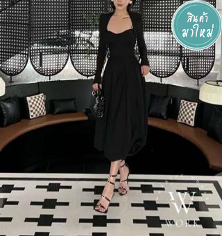 เสื้อแต่งสายเดี่ยว แขนยาวสีดำผ้าร่องเล็กเนื้อนิ่มเกรดพรีเมี่ยม