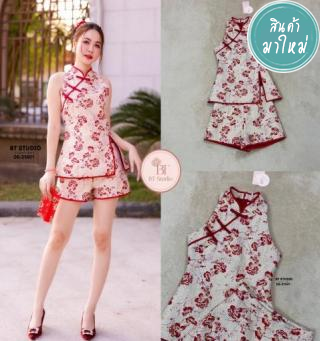 เซท 2 ชิ้น เสื้อแขนกุดคอจีนลายผ้าดอกไม้ แต่งแทบจีนกระดุมจีน