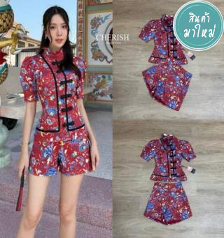 สาวหมวยต้องไม่พลาดชุดนี้ Set กี่เพ้าพิมพ์ลายดอกสุดเก๋