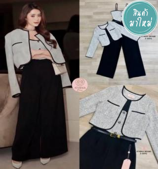 เซท 2 ชิ้น เสื้อเบเซอร์แขนกุดกระดุมหน้าปลายชายตัดเฉียง