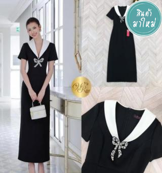 เดรสแขนยาวซีทรูสีดำทรงหางปลาผ่าหน้าทรงสวย