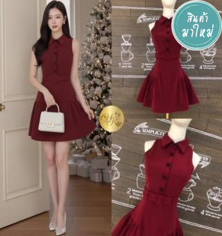 Dress เดรสแขนกุด คอปก อกติดกระดุม ซิปหลัง มีเข็มขัดให้ 1เส้น
